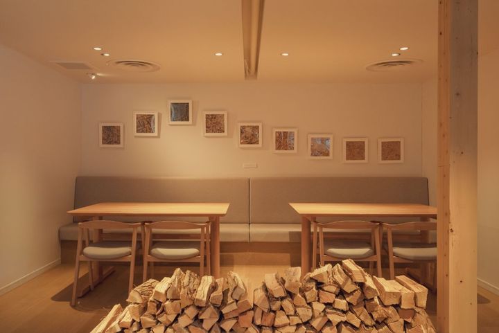 店内の突き当たりには、地元御殿場産の萱(かや)を藍染めにしたアートが展示されていました。