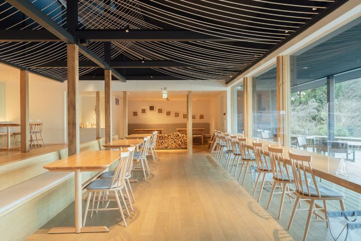 外の景色がよく見えるように工夫された店内は、全面ガラス張りで明るく開放的な雰囲気。カウンター席にはコンセントも完備。フリーWi-Fiもあるため、ワーケーション利用にもおすすめです。