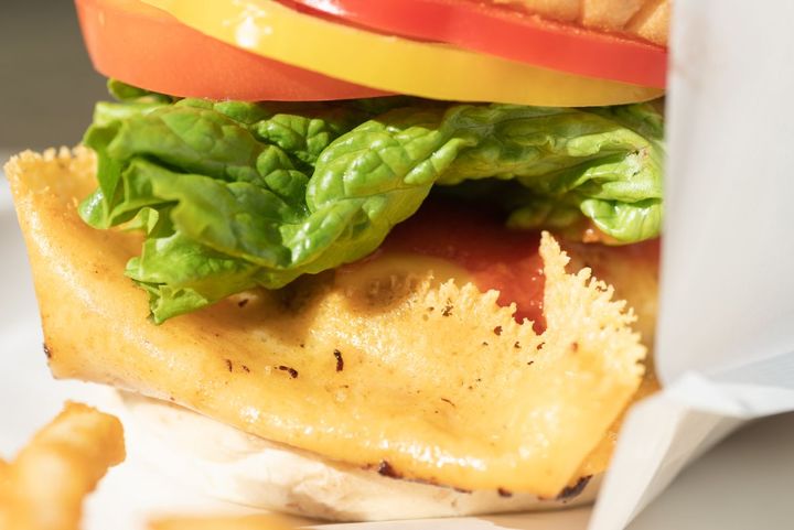 焦がしたミックスチーズに包まれたパテは、牛肉100%!静岡県内産のブランド牛「あしたか牛」が使われ、とってもジューシー。甘みを感じるフレッシュな野菜も、もちろん県内産です。
