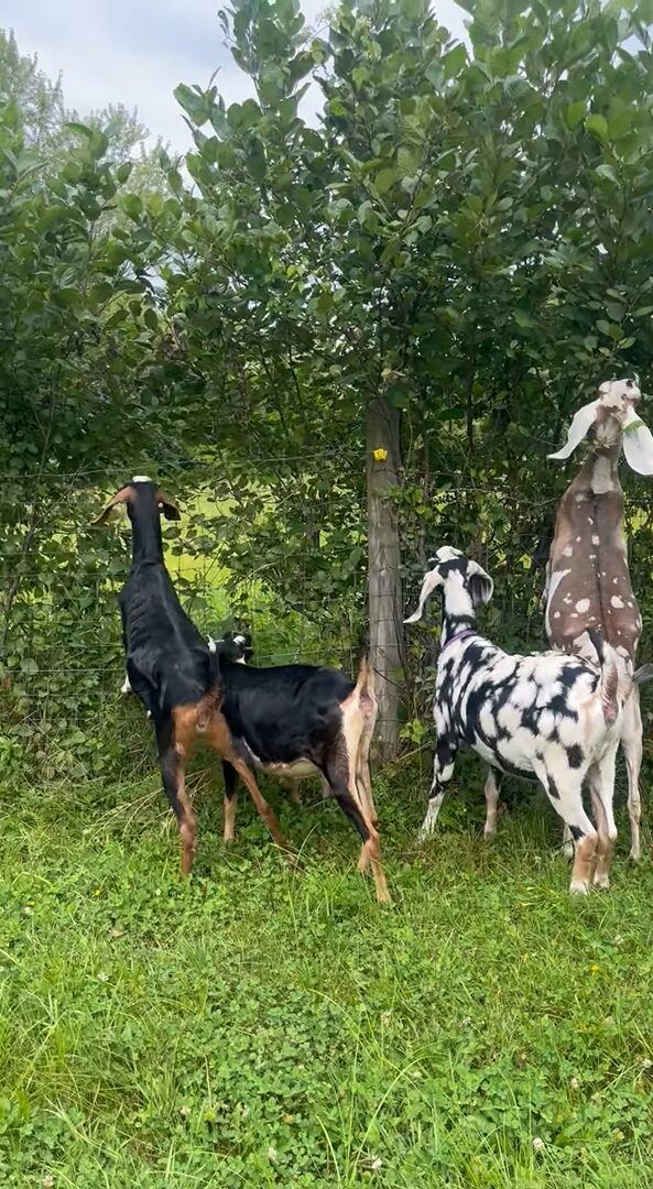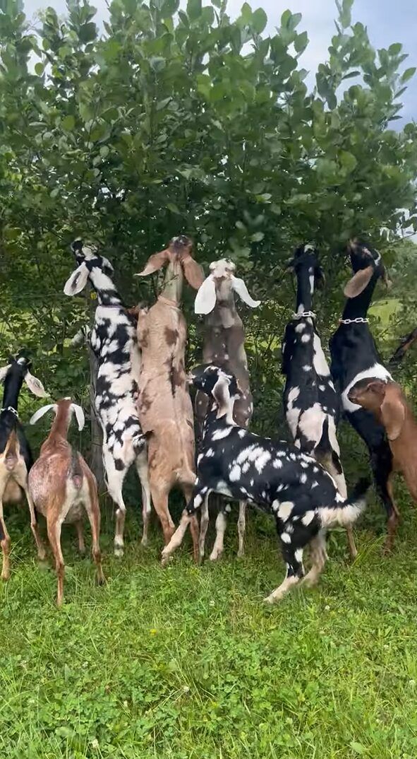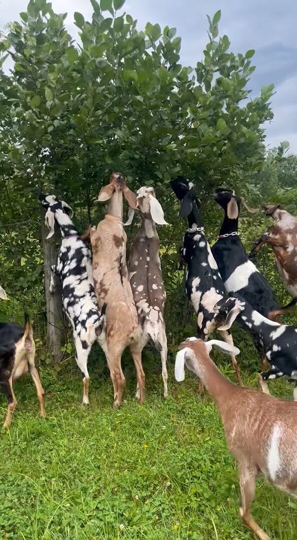 3. 葉っぱ食べ放題にヤギたち大はしゃぎ!みんな生い茂った木の葉か見えてない!?【アメリカ・動画】