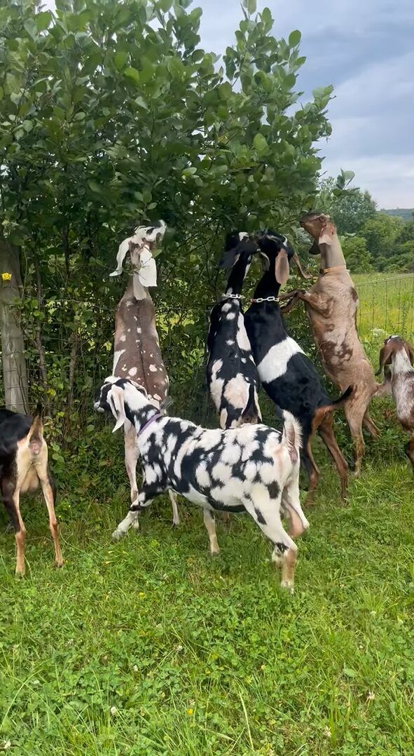 葉っぱが食べ放題だと大はしゃぎするヤギたちの姿が微笑ましい!
