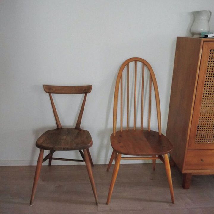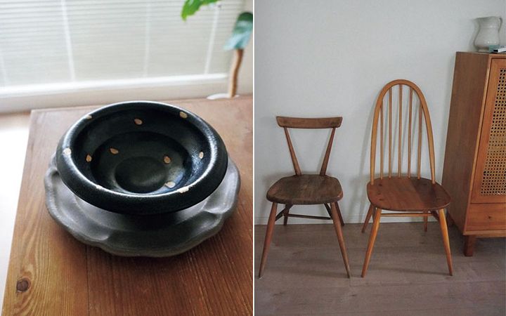 鎌倉の「artique kamakura」で、無垢な雰囲気が飽きのこない椅子を購入。メンテナンスしながら大事に使っています。トレンドのインテリア雑貨と組合せを考えるのも楽しい!