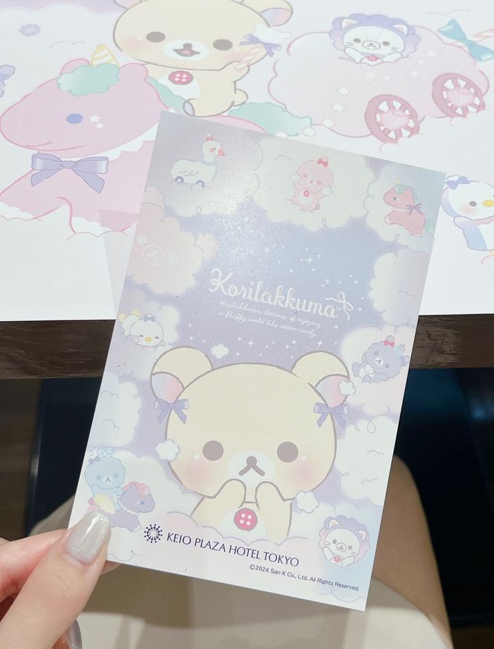 まず店内に入ると、入口にはちょこんとお座りした可愛いコリラックマたちがお出迎え♡ なんと事前に予約をすると特典で全員貰えるとってもキュートなオリジナルポストカードが……♡ 3種類の中からどのデザインが当たるかは当日行ってからのお楽しみです。