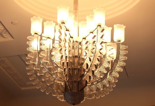 本館1階の大客室華やかに演出するのは2つのシャンデリアルネ・ラリック製作の《ブカレスト》です。