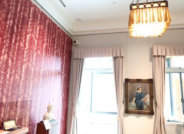 室内には、ダイヤモンドとプラチナの御遺愛品のブレスレットと、《朝香宮鳩彦王妃允子肖像》も飾られていて、妃殿下がいらしたときの華やいだ雰囲気を感じました。