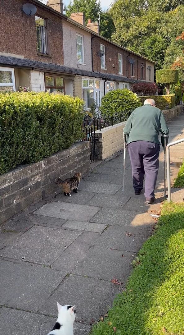 3. 一緒におさんぽ!おじいちゃんの歩調に合わせるネコにほっこり【海外・動画】
