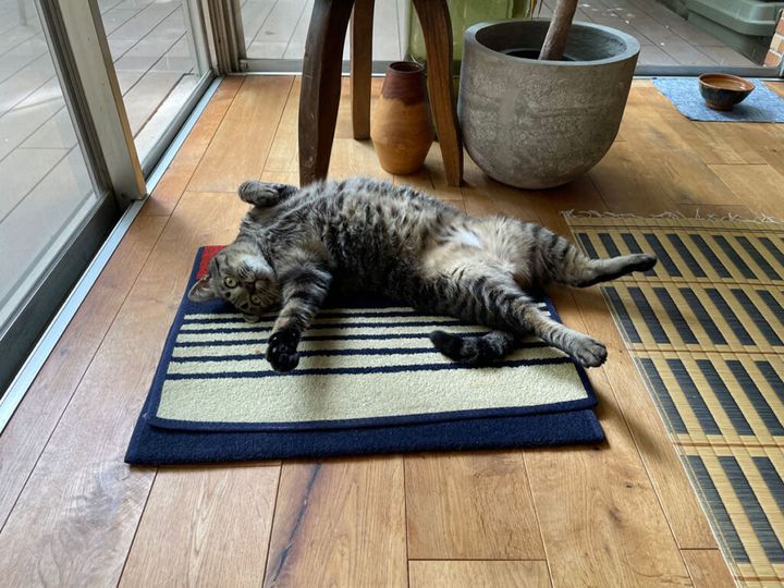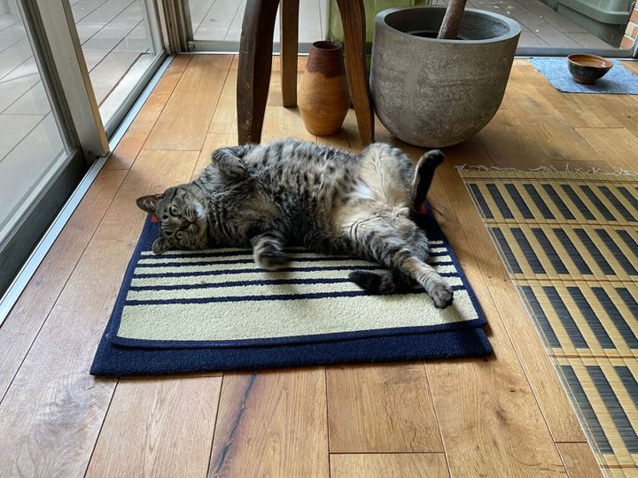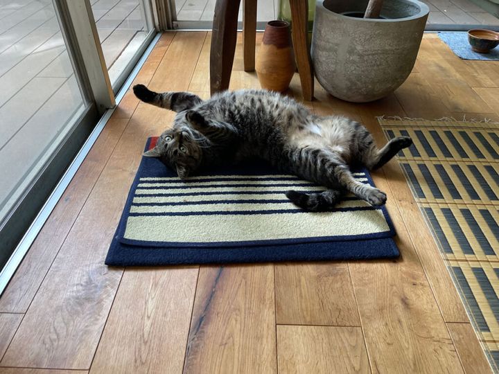 ほんとは砂の上とかでゴロゴロしてみたいけど、このマットがザラザラしていて少し硬いから、ゴロゴロにちょうどええねん。
