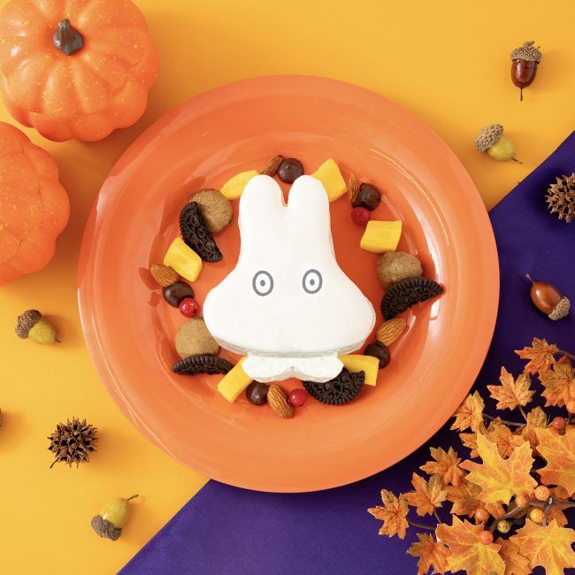 オランダの家庭料理、エルテンスープとトマトクリームで煮込んだミートボールがメインディッシュの「ミートボール トマト煮プレート」1,990円など人気の食事メニューが3品、ミッフィーの顔になったレモン風味のチーズタルトに季節のフルーツを添えたデザート「きせつのタルト」1,490円、オレンジマーマレードやチョコガナッシュをサンドした「おばけミッフィーのチョコナッツケーキ」1,690円など、11/30(土)までの期間限定メニューが2品、絵本に登場した「おいしいなし」のソーダ990円などオリジナルドリンク3品のほか、ドリンクとセットになったフェイスフィナンシェ1個(キャラメル)390円(4個入りギフトパックは1,490円)がスタンバイ。