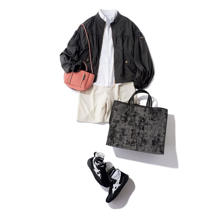 突然肌寒くなる日もある9月にお役立ち。薄軽羽織りは旅行にも◎。ブルゾン¥72,600(タトラス/タトラス コンセプトストア 青山店)