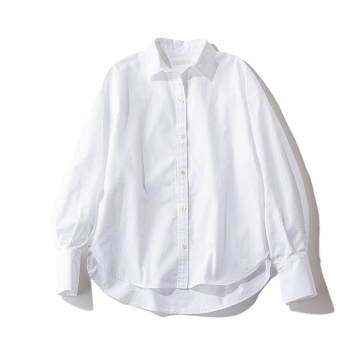 シーズンレスに頼れる白シャツ。少しふわっとした袖と長めの袖口で、シンプルでも着映え度満点のデザイン!¥27,500(アルアバイル)