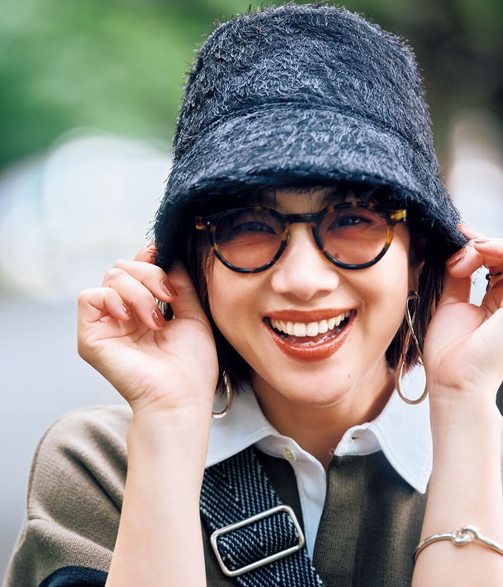 個人的に大好きなバケットハット。つばが広すぎず、キャップと同じ感覚でポンッと被れるものが好みです。 帽子アリの時のサングラスは薄いカラーのレンズが鉄則! (潮田玲子さん)