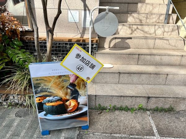 202カリー堂はあらかじめ整理券を取って時間を調整するほどの人気店。プリンや季節のスイーツも大得意なこの店舗の通常の開店時間は9時。モーニングのカレーリゾットもオススメですが、ランチタイムは混雑店となるため、朝のうちにカレーを頼む方も多いそう。カレーフェスの間は、ちょうど大人気の小さめかぼちゃを丸ごと使ったスイーツの時期で、その準備のために1時間遅い10時から開店(10月末まで)となっているそうです。