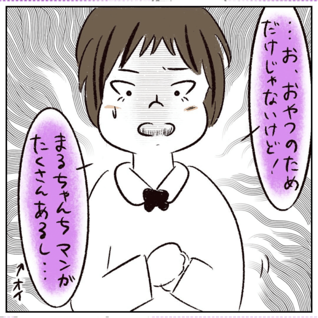 さなかちゃんは「・・・おやつのためだけじゃないけど!まるちゃんちマンガたくさんあるし・・・」と言ってきました。