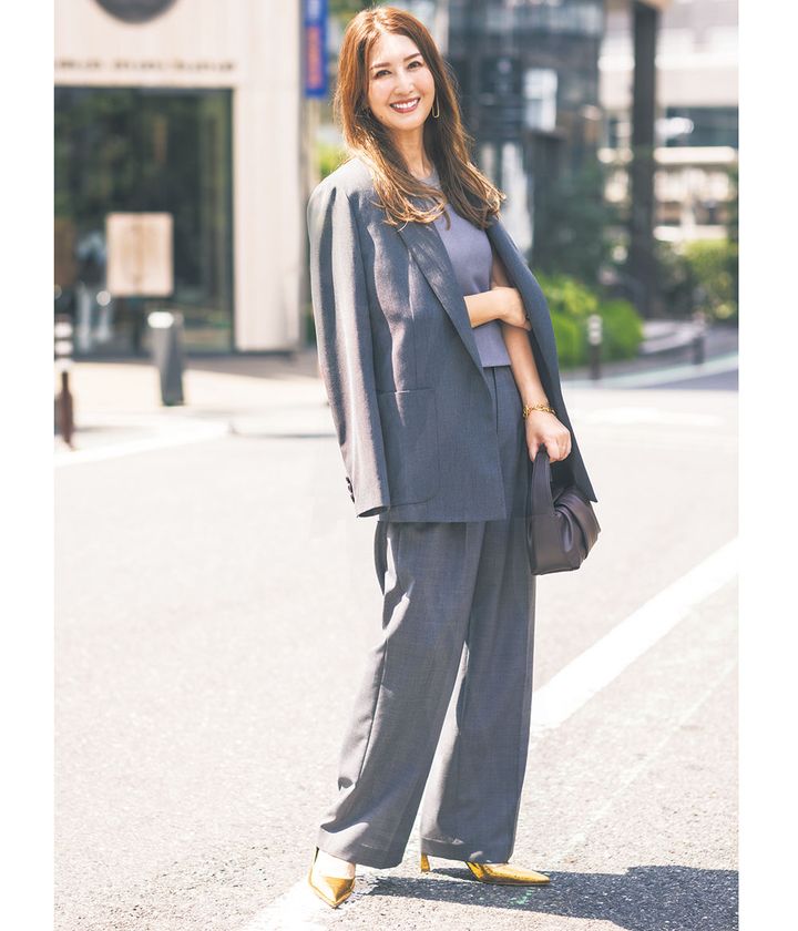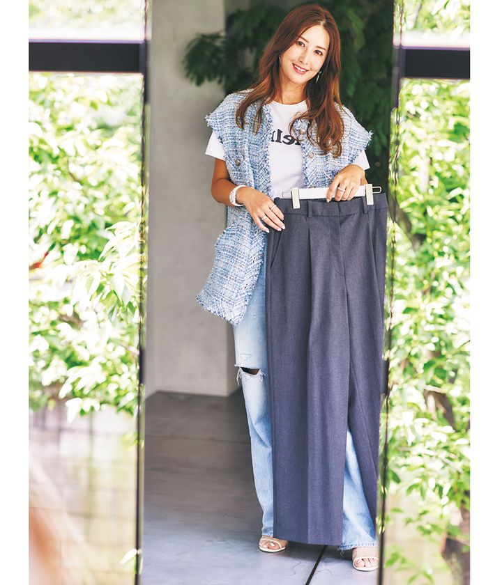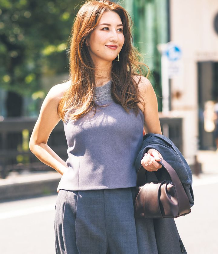 パンツ¥33,000(エストネーション/エストネーション)タンクトップ¥27,500(ハイク/ボウルズ)ビスチェ¥15,950(アンクレイヴ スタンダード/アンクレイヴ)ジャケット¥52,800(アルアバイル)バッグ¥31,900(ルメン/office. koizumi.)パンプス¥36,300(PIPPICHIC/ベイジュ)ピアス¥12,100(ワンエーアールバイウノアエレ/ウノアエレ ジャパン)ブレスレット¥16,280(ベン・アムン/ZUTTOHOLIC)