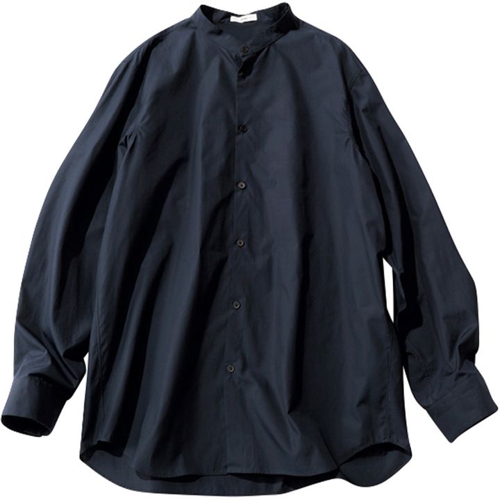 シルエットの美しさとストレスがない着心地で男女問わずファンが多い名品シャツ。独特の窮屈さが気になる、真面目になりすぎる、古臭く見える、などシャツの悩みはサイズ感で一挙解決。ゆるめオーバータイプならインした時もほどよくたまって、今っぽいカジュアル感とキレイを両立。園送迎でも型にはまらない自分軸ネイビーに。