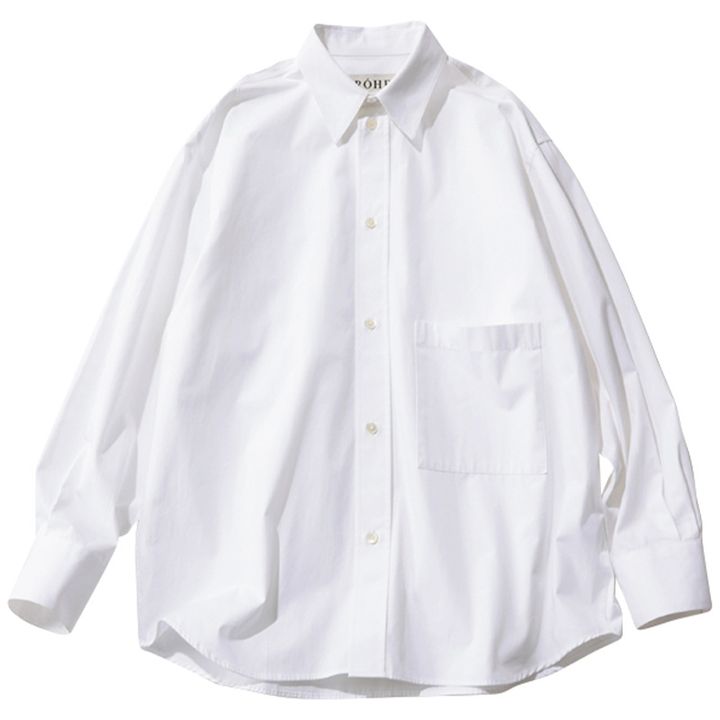 ユニセックスで、ぶかっと体が泳ぐサイズ感も「今どき白シャツ」を体現。クラシックな仕立てながらポケット位置などひねりの効いたデザインがコンサバすぎず、デニムにも取り入れやすい。