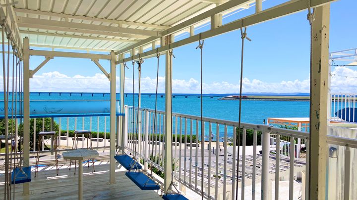 ブランコに揺られながら、美味しいスイーツを楽しんで、目の前に広がる海を眺める…