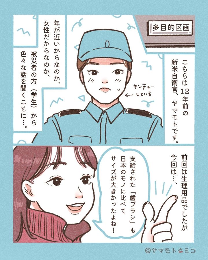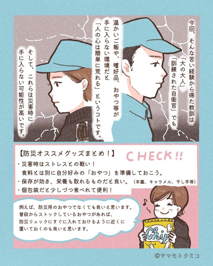 元海上自衛隊のイラストレーター・ヤマモトクミコさんが、東日本大震災の支援を通じて学んだことをマンガでお伝えする連載「元自衛隊員が描く“こころの防災”」。