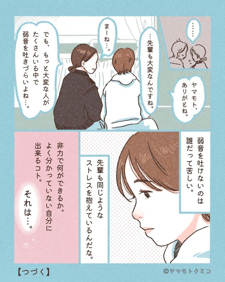 漫画に描いた「八つ当たりしてきた上官」も、普段は穏やかな上官でした。いかに環境が人を変えるのか…それを痛感する日々でした。