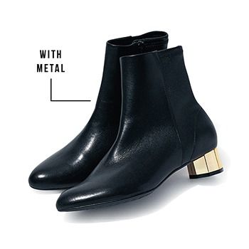 ゴールドミラーヒールブーツ(3.5)/オゥ バニスター(アバハウスインターナショナル オンラインストア) 全体に個性を出すと派手に見えるけど、ヒールならいい意味で目立たない。定番の形をゴールドのヒールでアップデート。