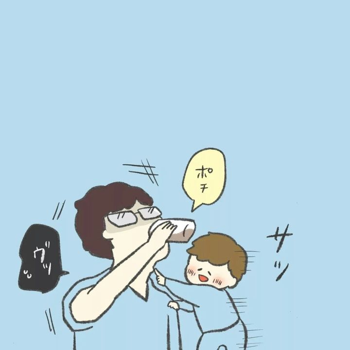 気になることは行動せずにはいられないのが子ども。飲んでいる最中にのどぼとけを押されたお父さんはびっくりしたでしょうが、こうやって、一つずつ経験値が増えていくのでしょうね。