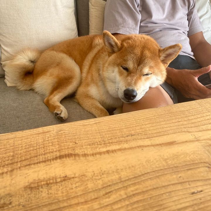 こんにちは、ハルくんです。とーちゃんの方針により「抱っこ好き」に育てられたぼく。おかげで誰にでも抱っこされてしまう柴犬に成長しました。でも、ときには抱っこではなく膝枕のポジションもとりたい。受動的な抱っこに比べて、膝枕は能動的な行動だとは思いませんか。ぼく自らが望んでその膝に顎をのせているのだ、という感じが大人っぽくていい。てなことで、この日はとーちゃんに膝枕をしてもらいました。どっちにしても眠たくなってきちゃうのですが……。