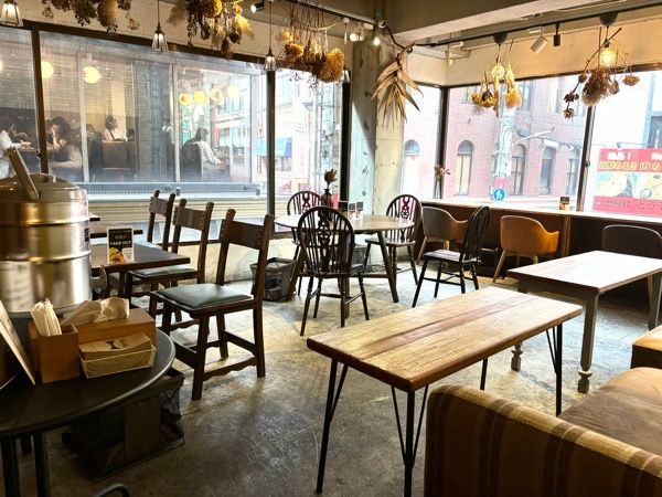 ゆったり2階席もあります。先に席をとり1階で注文をしてから2階にあがります。カウンターからは南京町が見下ろせるのでスイーツを食べながらゆっくり過ごすのも良いですね。