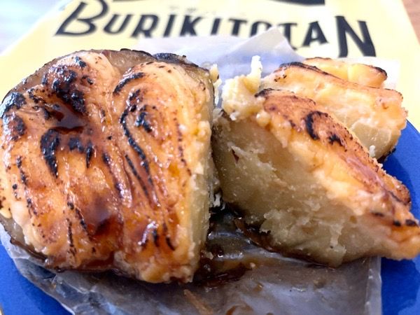 「BURIKITOTAN(ブリキトタン)」の人気商品は、ずばり焼芋ブリュレと切揚(きりあげ)。さっそく購入し実食。 焼芋ブリュレ(650円)の重みたるや!実際に計ってみるとなんと300gもありました。食べ応え充分です!