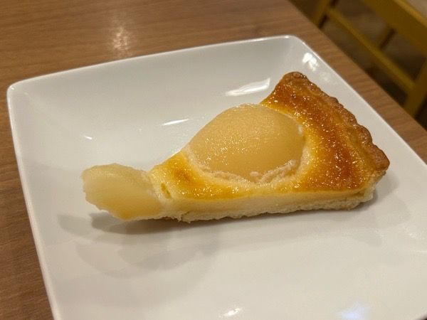 甘さ控えめに焼きあがっているタルトの生地にさわやかな甘味の洋梨が入ってる。