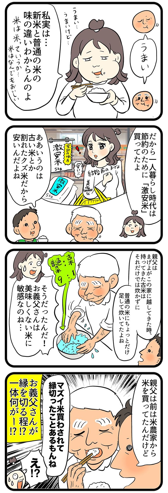 米の味に敏感な義父・マキオさん。私がこの家に引っ越したときに持ってきた古米を…【しぶしぶ同居したら義父が最高だった件・57】