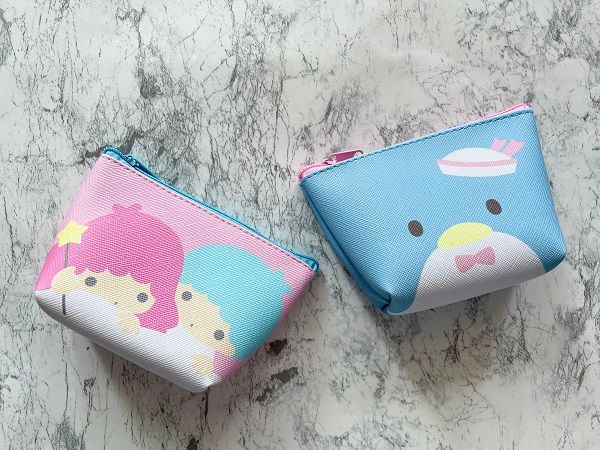 こちらは先ほどのフラットポーチのシリーズ。双子のきょうだいが愛くるしい「キキララ」こと「リトルツインスターズ」と、ダンディーな「タキシードサム」!なんとも愛くるしい! ほかにも、「ポムポムプリン」や「シナモロール」など懐かしいキャラのオンパレード♪