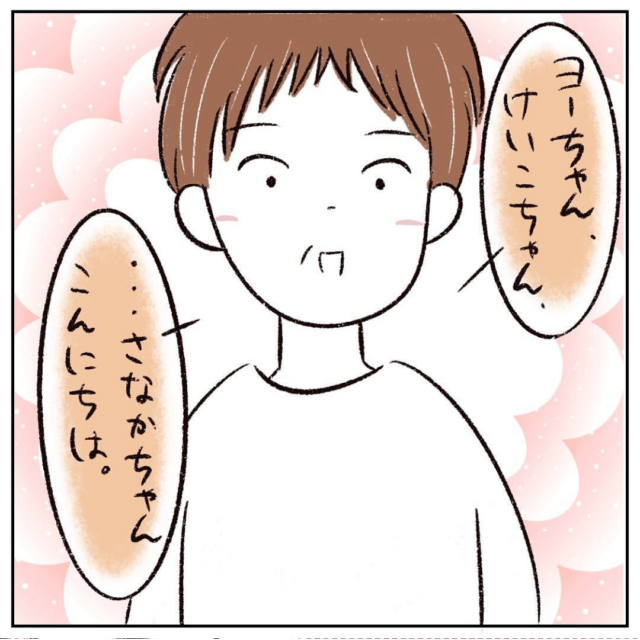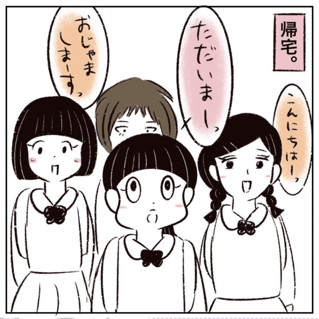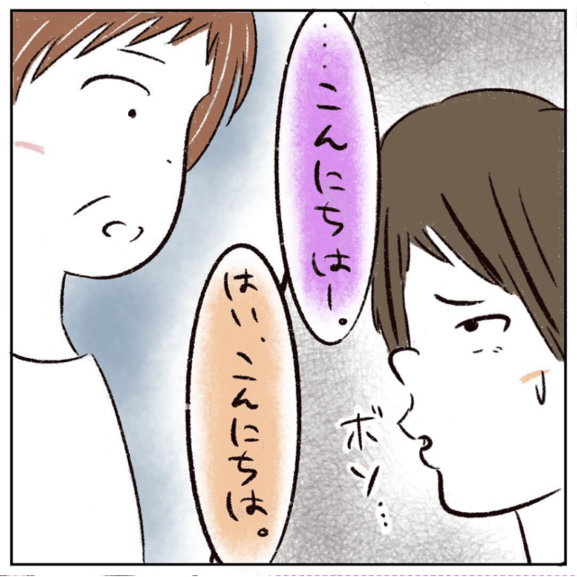 大人に叱られたさなかちゃんは「・・・こんにちはー」と小さな声で挨拶しました。