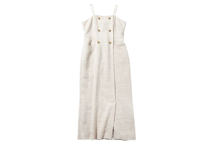 ツイード流行第2シーズンの今季だからこそ挑戦したいのが、これまた旬のビスチェ。たっぷりしたフレアスカートとのセットで、レディなテンションを爆上げして!