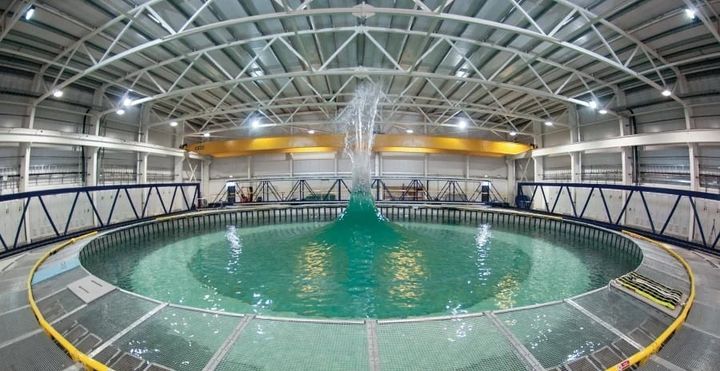 次に研究者たちは奥行きを考慮した状況を再現する為、巨大な円形造波水槽を利用し、複数方向から押し寄せる波が合わさったときに何が起こるかを調べてみました。