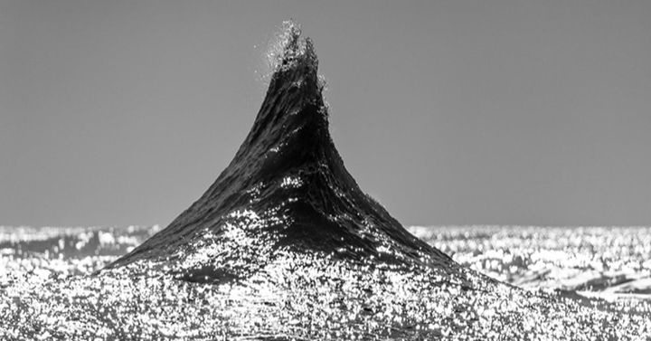 上の写真は静かな海に突然現れる巨大な山のような波を映しています。