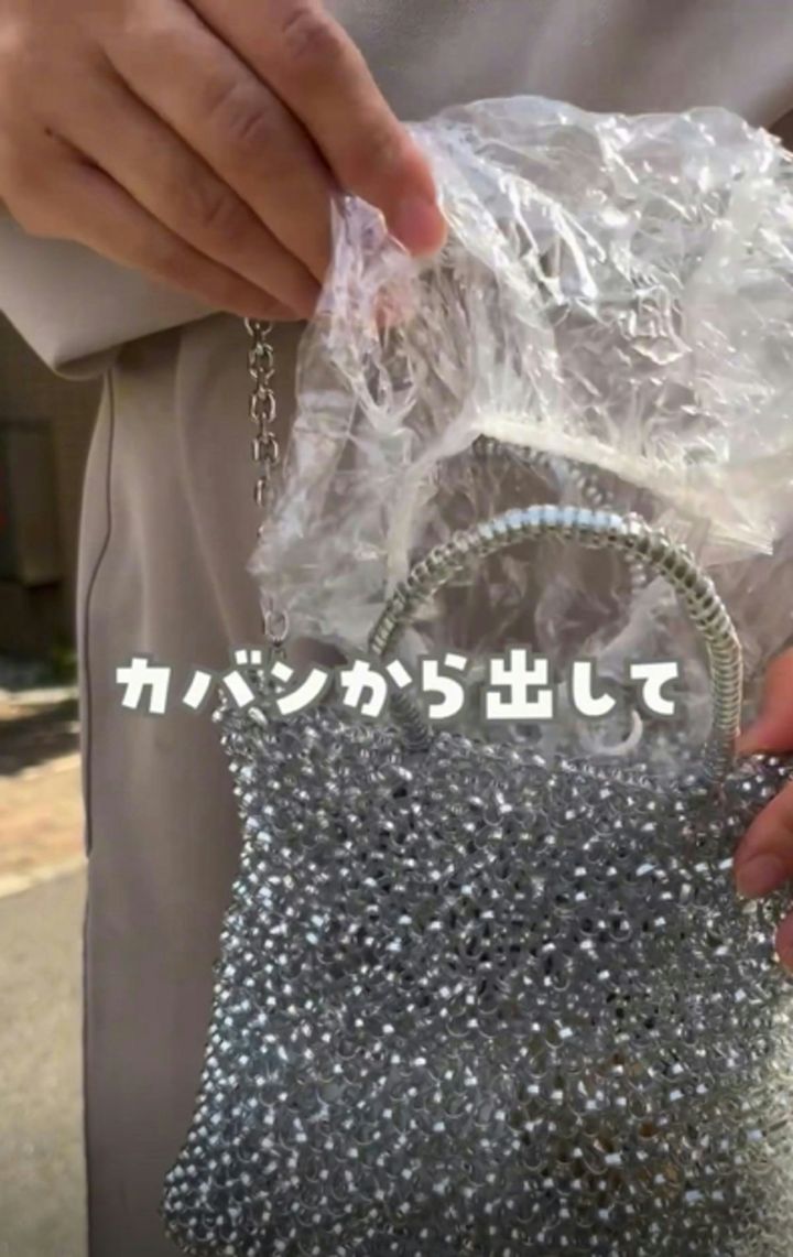 飴などで自転車のサドルが濡れてしまったら、まずバッグからシャワーキャップを取り出します。