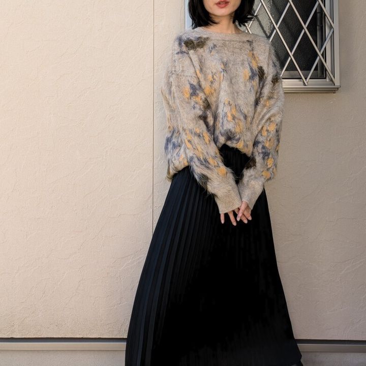 花柄ジャガードシャギーニット 着用コーデ