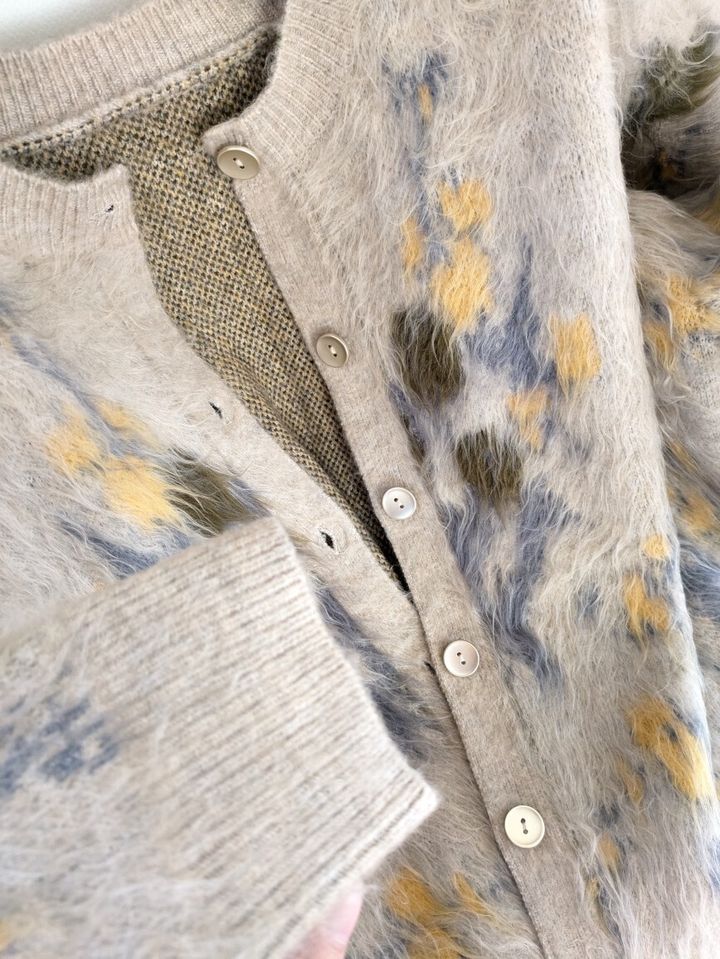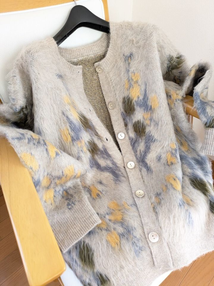 毛足が長いシャギーニットカーディガン
