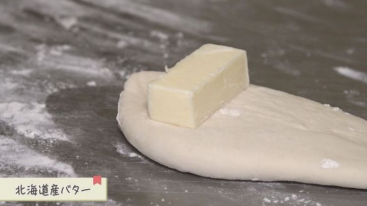 のばした生地に、たっぷりの北海道産バターを巻き込んで焼きあげていきます。