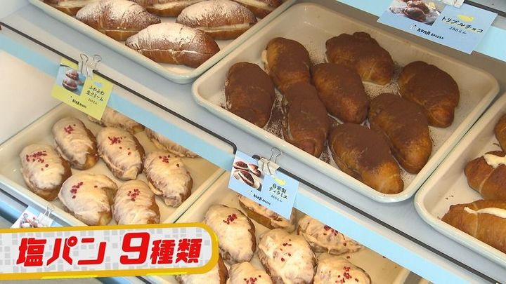 お店で焼き上げる“塩パン”は、スイーツ系から総菜系まで全部で9種類もあるんです!