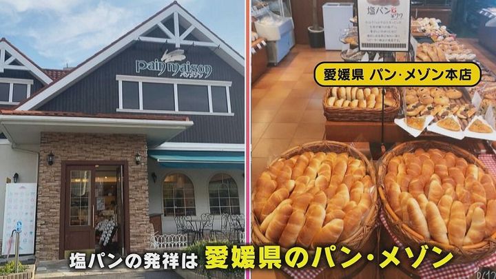塩パンの発祥は11年ほど前、愛媛県の「パン・メゾン」が猛暑になるくらい暑い地域だったので「塩分補給のためのパン」という意味合いで、考案されたと言われているそうです。