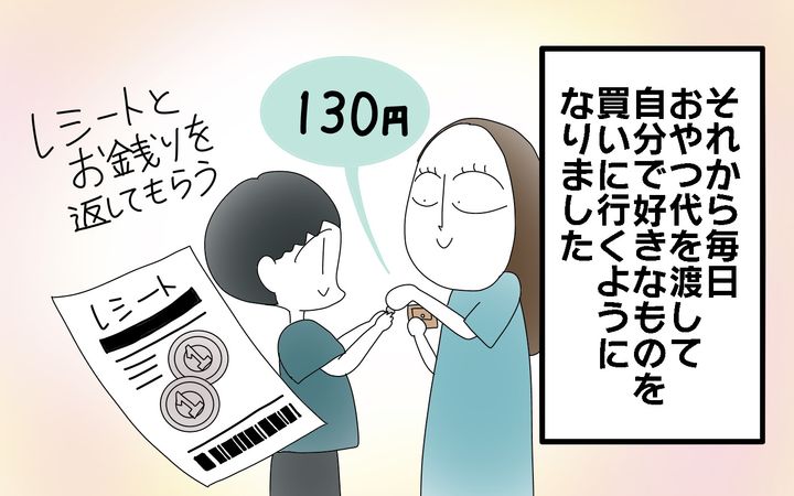3年になり、学童にはほぼ行かなくなった長男。平日もおやつを自宅で食べるようになったある日、その日の気分とおやつに用意していたグミが噛み合わないという日がありました。一緒に買い物した時にお会計の仕方を話したばかりだったのでアイスを1人で買いに行ってみないかと提案してみたところウキウキの長男。