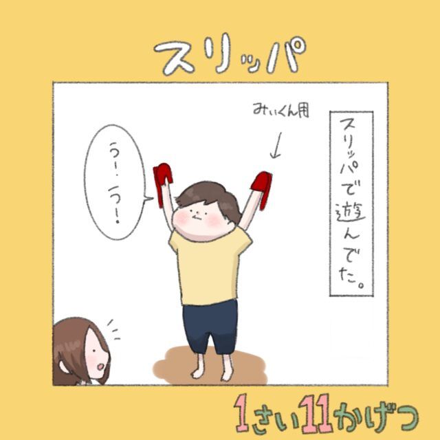 2歳の男の子みぃくんのお母ちゃんであるねむりひつじさんから、みぃくんのスリッパのお話です。みぃくんはスリッパで何をして遊んでいたのかな?