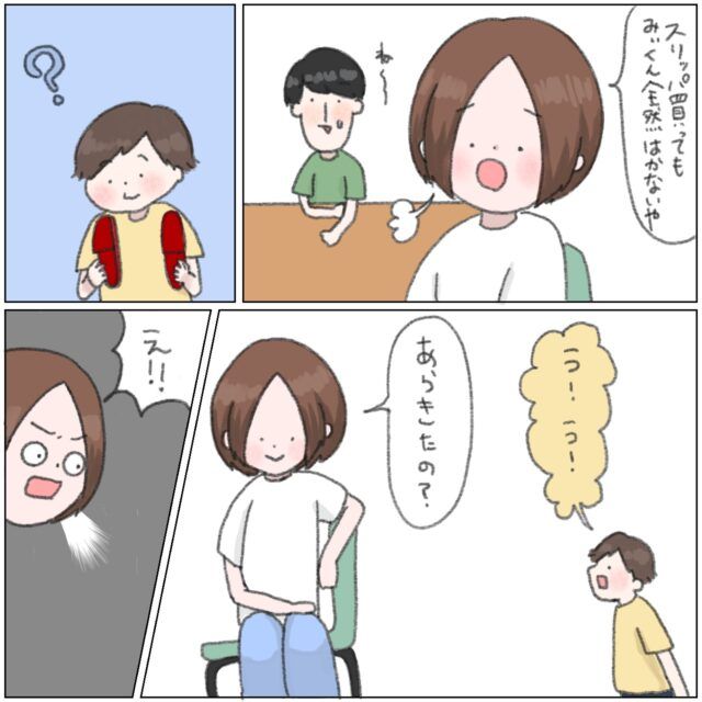 スリッパは遊ぶものじゃない。母のぼやきを感じ取った2歳息子の行動が可愛すぎる|ねむりひつじの子育て絵日記
