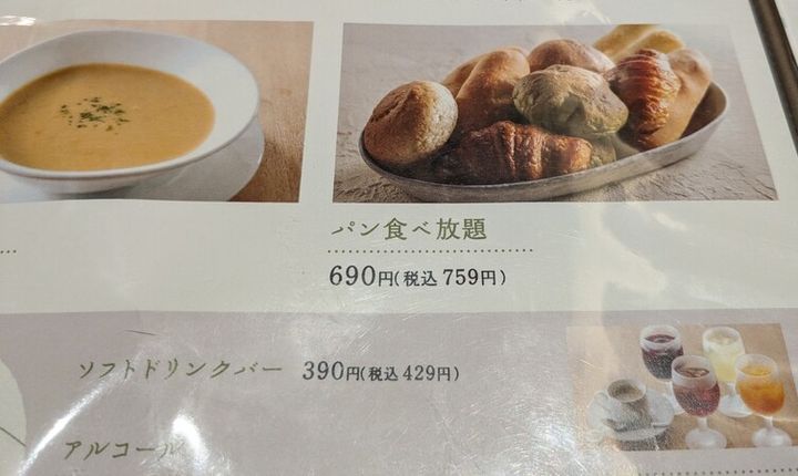 価格:パン食べ放題:759円、ソフトドリンクバー:429円