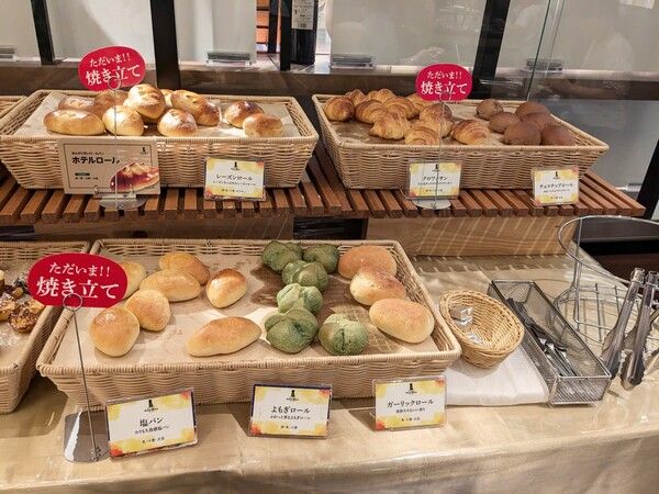 「薩摩芋と蜂蜜のホールホイート」や「パンスイス」など、期間限定のものからほんのり甘い人気の「ホテルロール」までさまざまなタイプのパンが楽しめます。ひとくちサイズのものが多く、食べやすいので、たくさんの種類が味わえます。