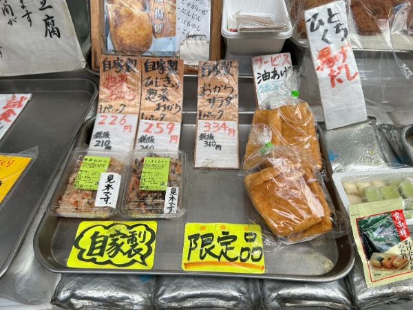 創業五十年余、地元で愛され続けるお店がこちらです。軒先に商品が並ぶ様子は、なんだか魚屋さんのよう。豆腐一筋、その製法は昔から変わらず手作りされているそうです。そごう横浜にも入っている、百貨店お墨付きの専門店ですよ。