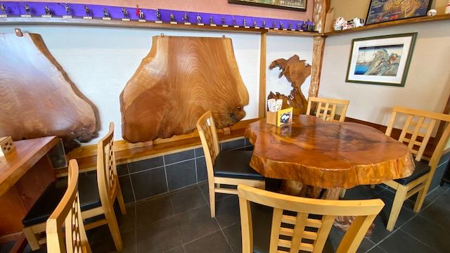 石屋町店のイートインスペース。セルフサービスで無料のお茶もいただけます