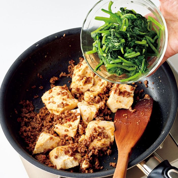 3. 【ほうれん草1わペロリ】野菜不足にうれしい『ほうれん草の麻婆豆腐風』の作り方