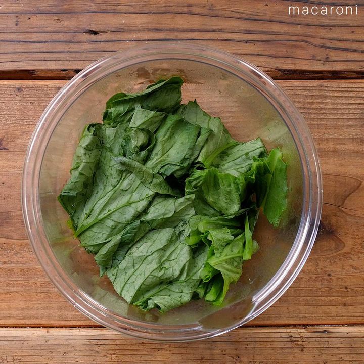 2: 耐熱ボウルに入れてラップをかけ、レンジ600Wで2分加熱します。